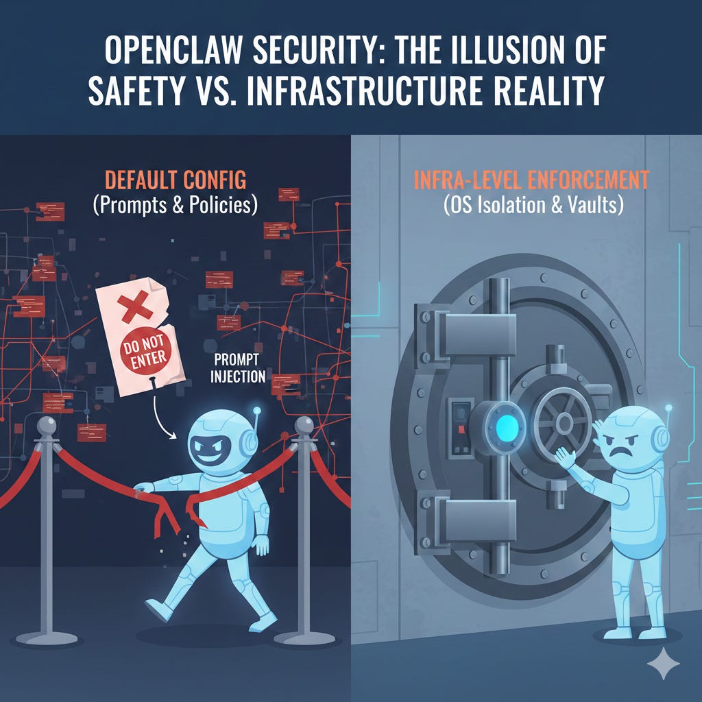 короткая версия: у openclaw четыре слоя защиты. три из них ненадёжны в изоляции. четвёртый — opt-in и выключен по умолчанию.